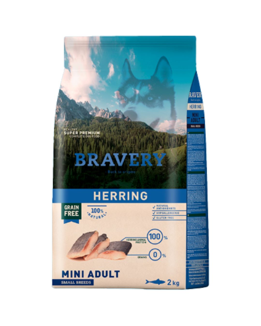Bravery Herring Mini Adult Small Breeds 2 kg – Nutrición Natural e Hipoalergénica con Arenque para Perros Pequeños Adultos